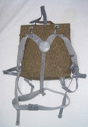 現在のバックパックからすると大分小型の部類です。周囲にポンチョを巻きつけて使うレトロなデザインで写真の様にグレーのサスペンダーに連結して使う他ショルダーバックとしても使えます。 バックパック自体はゲームには不要ですがサバゲ装備を入れて現地まで持っていくのに雰囲気作りには良いアイテムではないでしょうか。 |