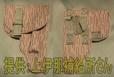 折畳シャベル用レインドロップ迷彩カバーでUTV装備用です。 西側の同種の物に比べるとかなり割り切った作りです。 |