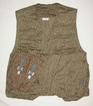 | 世界のどの国でも度胸一発、その苛酷さ任務の特殊さで空挺部隊は装備で優遇されています。 東ドイツも同様で空挺専用ベストが使用されています。装備品を一通り収納できるようになっておりグレネード3個、マガジン4個、ガスマスクなどが収納出来ます。 市場では付加価値がついて高値でしが実際はそれほど高価な物ではなく1万5千円程度が相場で1万円以下で店頭に並ぶこともありました。 |